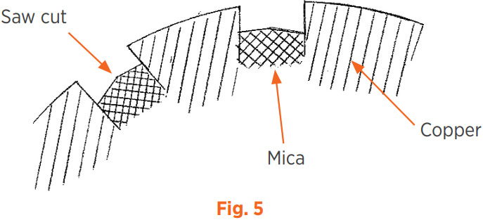 Once commutator has been resurfaced, mica insulation separating copper segments must be undercut. Undercutting is most easily accomplished with armature removed from machine. However, various tools are available to undercut commutator “in place”.